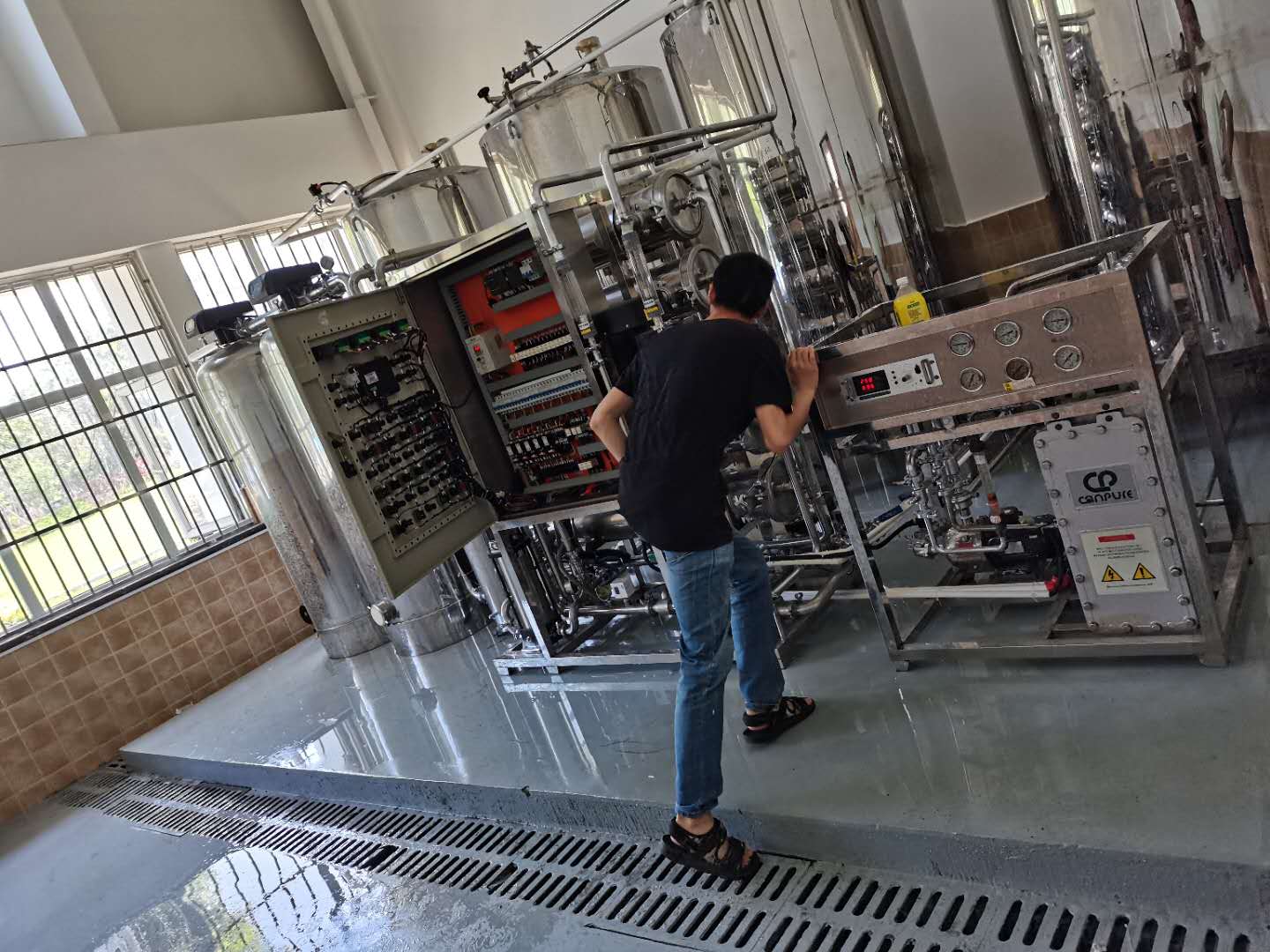 4、醫用純水工程設備采用低碳不銹鋼或其他經驗證不污染水質的材料。純化水的設備應定期清洗。