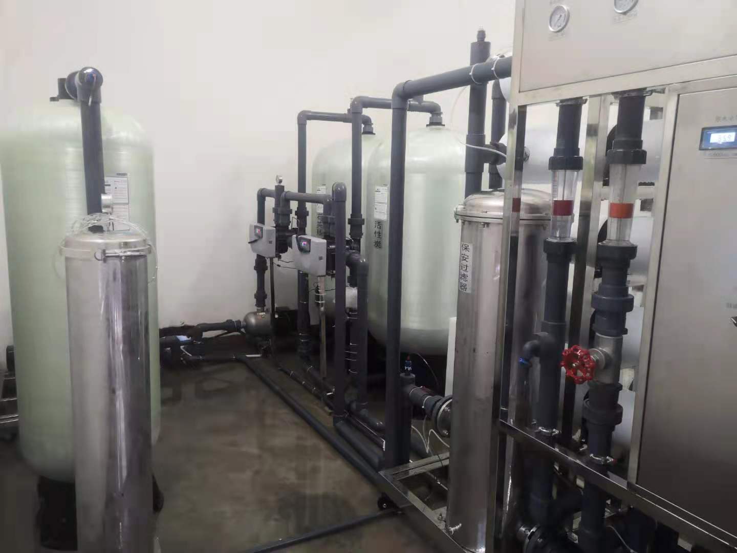 醫(yī)院血液透析用水對于水質(zhì)的要求非常非常的高,所以在工藝方面要求也是非常之高,血液透析用水處理設(shè)備的工藝必須嚴(yán)謹(jǐn),自來水要先進(jìn)入南方泵加壓讓水達(dá)到足夠壓力。原水就進(jìn)入了能去除雜質(zhì)的多介質(zhì)過濾器,經(jīng)過能除余氯的活性炭過濾器以及能降低硬度的軟水器。完成上述的預(yù)處理原水就可以到達(dá)二級反滲透主機(jī),進(jìn)一步去除重金屬離子、細(xì)菌等。由純化水箱到純水泵到消毒裝置的紫外線殺菌器凈化異味,最后到達(dá)精密的微孔過濾器過濾就可以出水了。