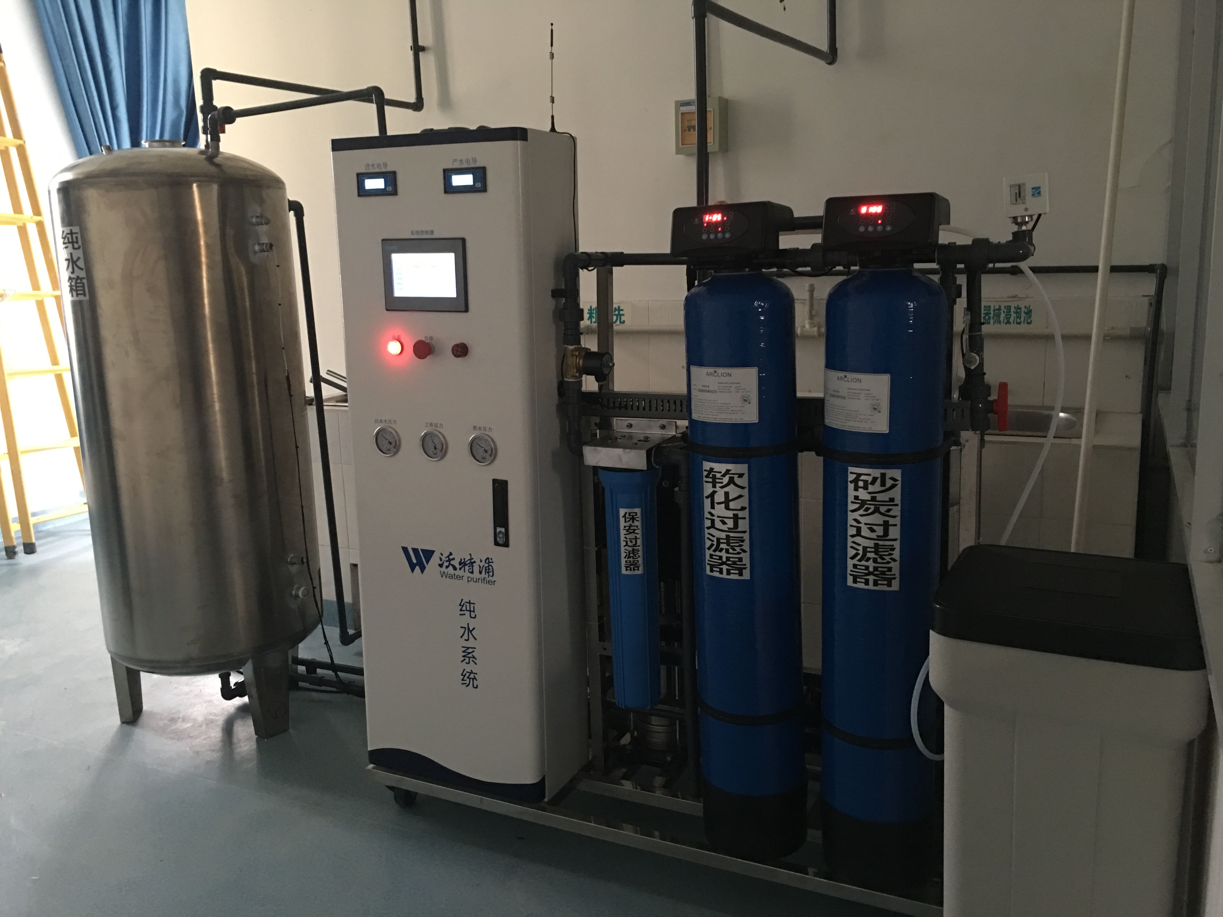 (1);純水箱水位到高位后關閉高壓泵、并關閉源水泵(進水閥)。